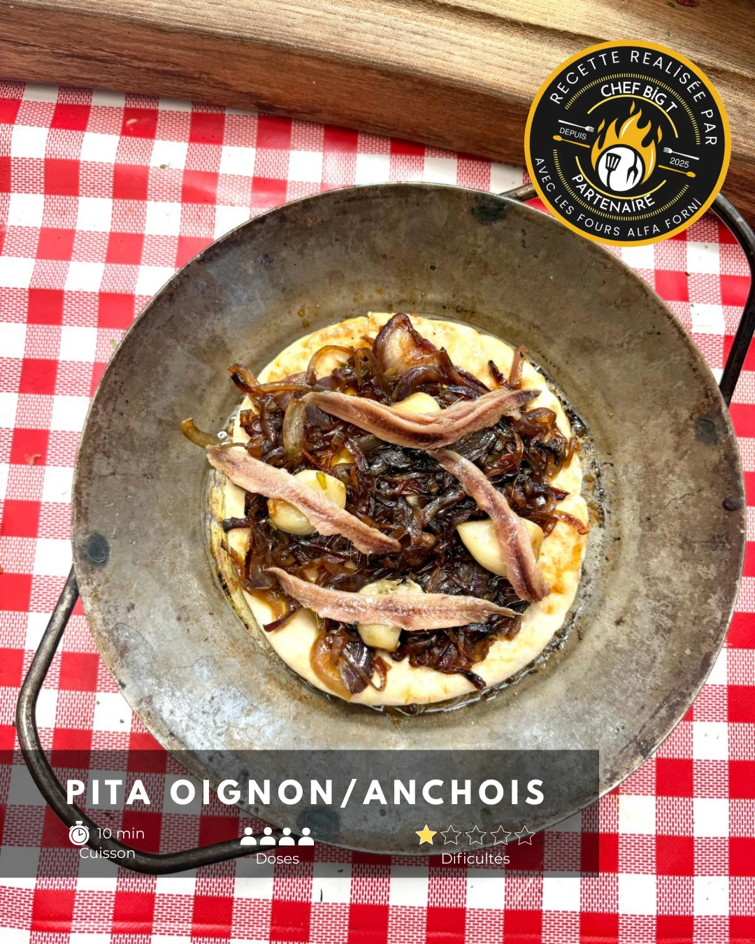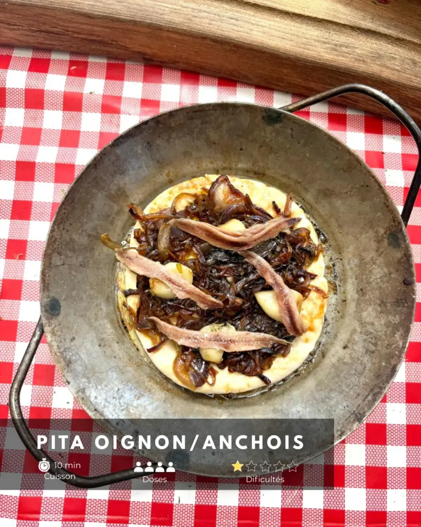 Pain pita crème d’oignon confits & anchois